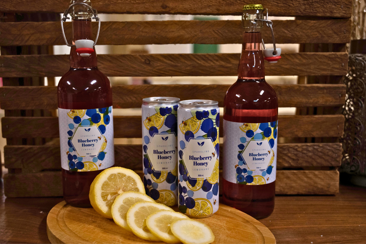 Enjoy the refreshing taste of handpicked Sparkling Blueberry Honey Lemonade, made with love straight from the farm. Bursting with our own fresh blueberries and the perfect touch of natural honey, this beverage offers a sweet, tangy sip of summer in every can and bottle. We think you'll taste the farm-fresh difference!